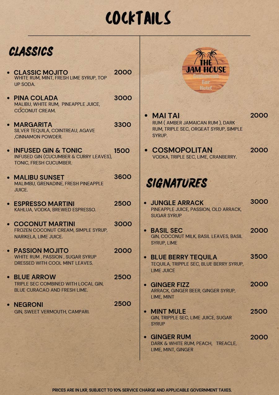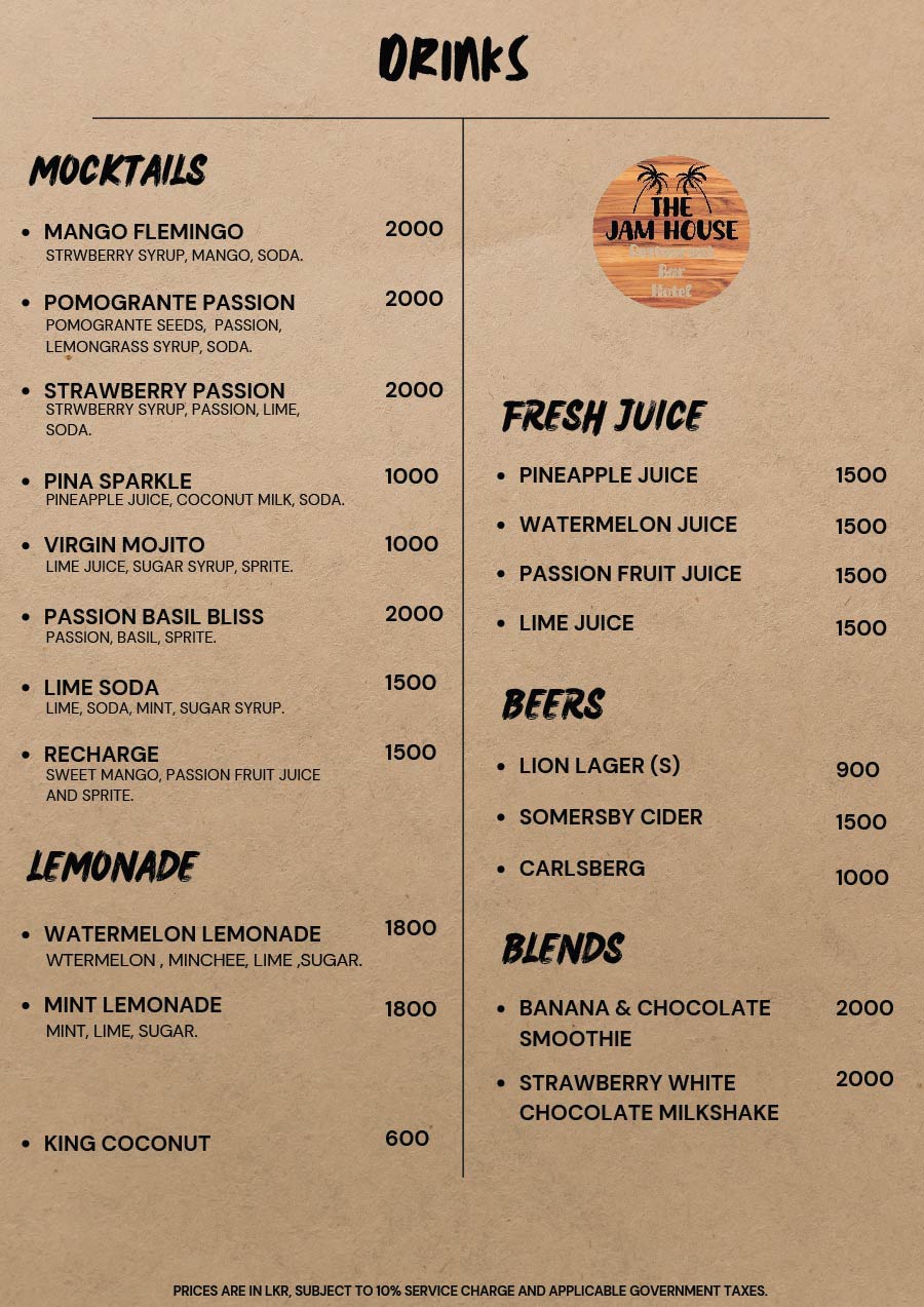 Embark on a culinary journey that transcends borders as our skilled chefs blend global influences with local authenticity. From aromatic Sri Lankan curries to international favorites, each dish at The Jam House is a harmonious blend of taste and tradition.